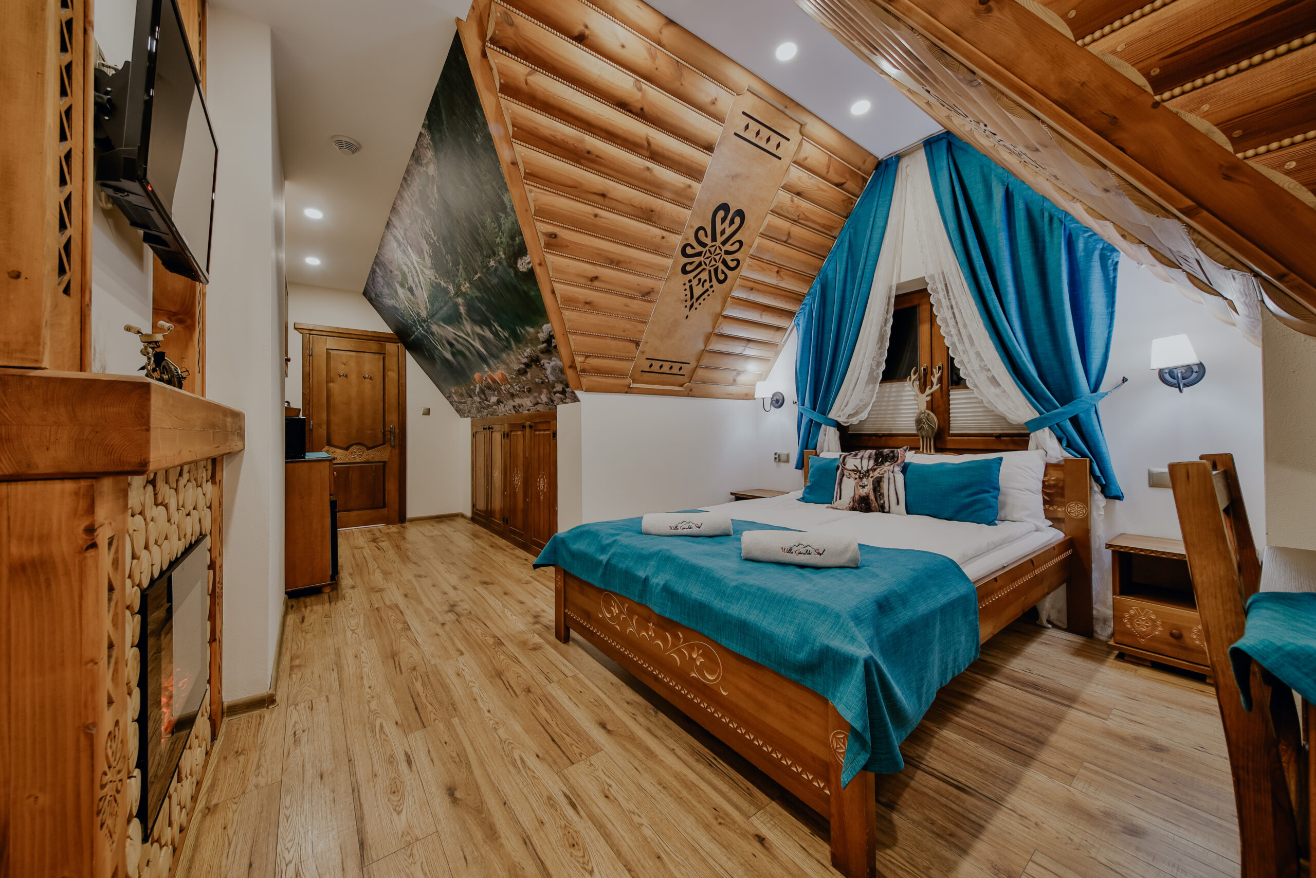 Nasze pokoje łączą góralski klimat z nowoczesną wygodą. Każdy z nich został zaprojektowany tak, by zapewnić ci spokój i pełen komfort po dniu spędzonym w górach. Jasne, przytulne wnętrza, drewniane wykończenia i miękkie tkaniny tworzą atmosferę, w której łatwo się zrelaksować. W każdym pokoju znajdziesz prywatną łazienkę, telewizor, Wi-Fi, czajnik oraz wygodne łóżka z czystą, pachnącą pościelą.